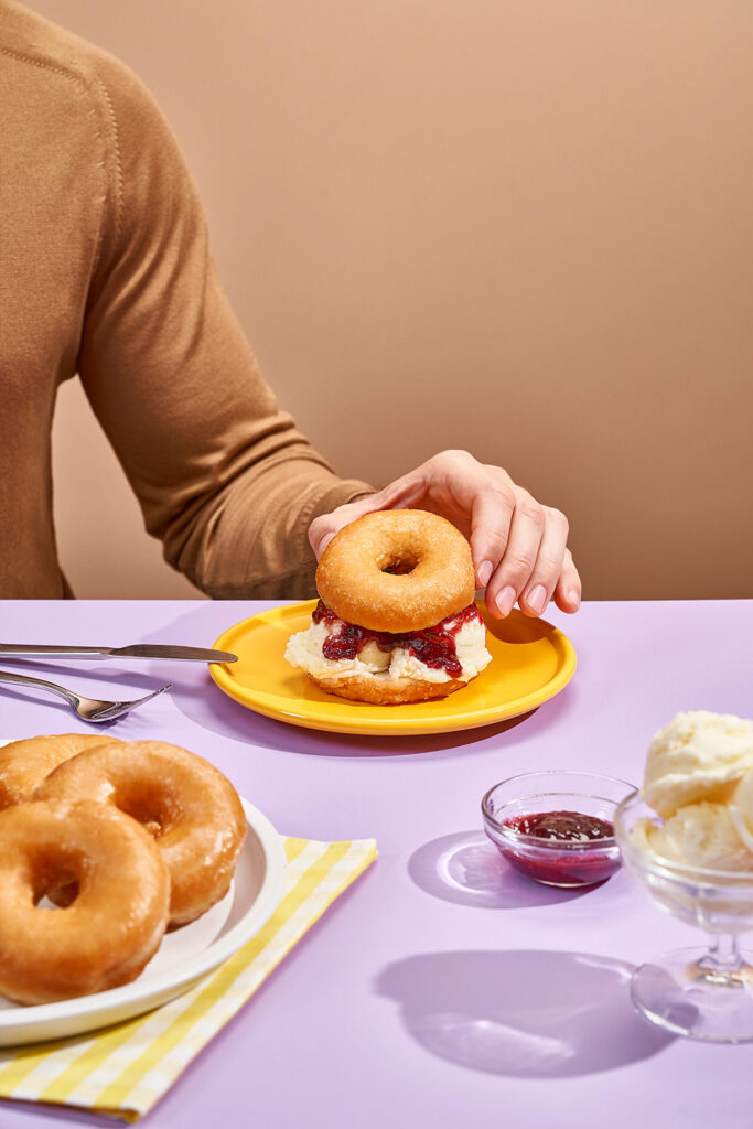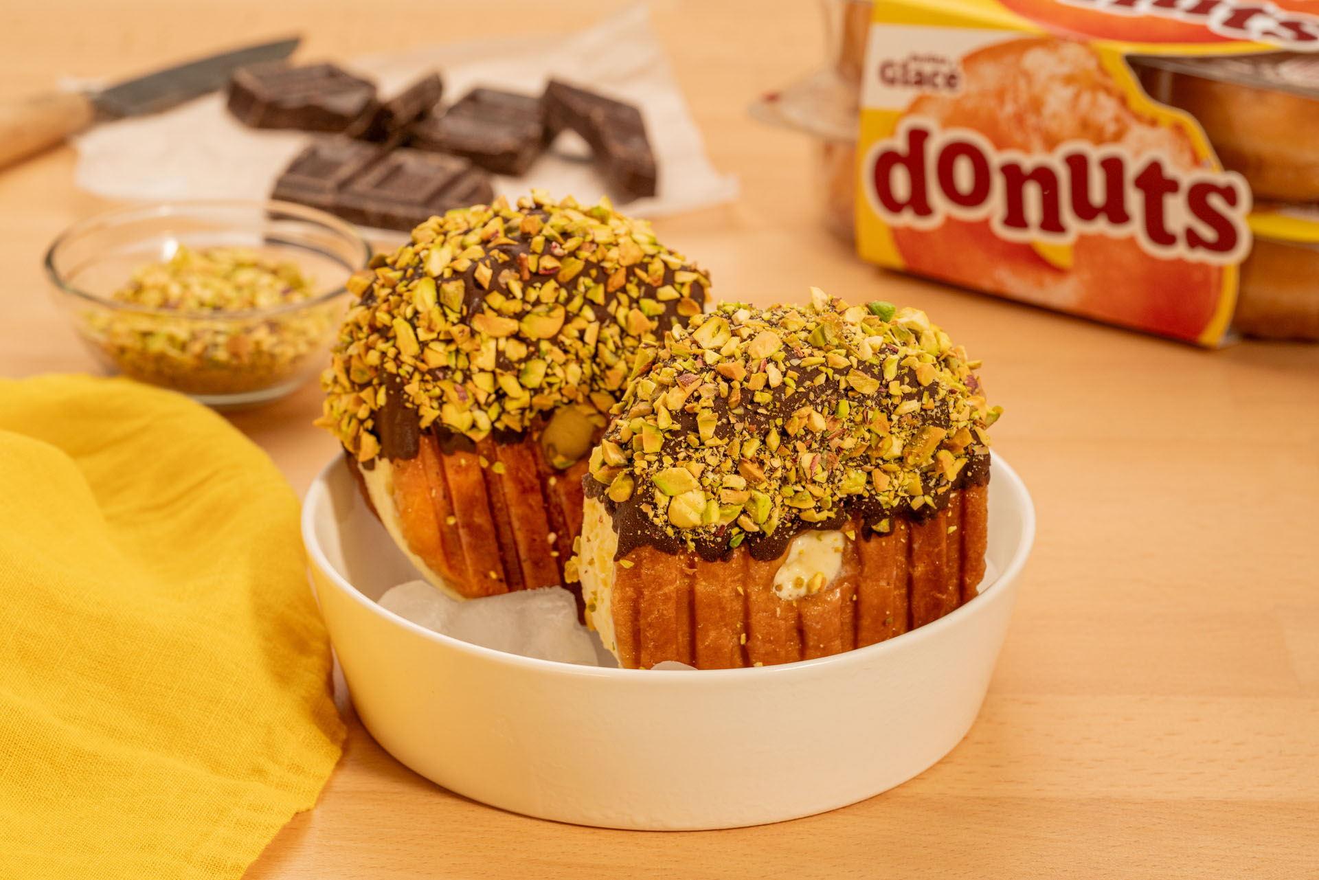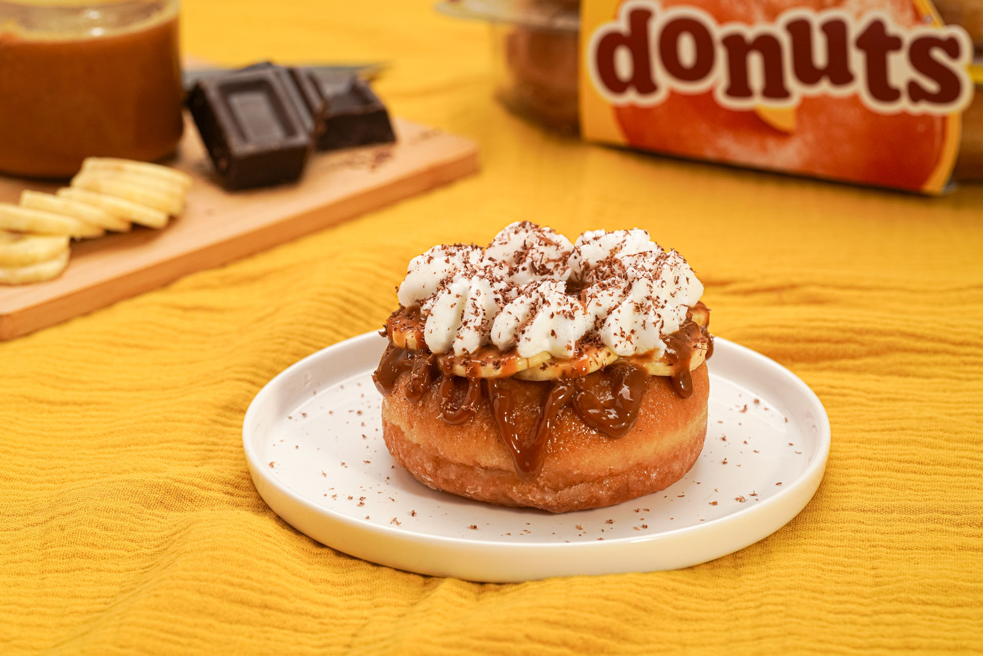Esta receta transforma tu Donuts® en una merienda cremosa y afrutada: relleno con crema suave y coronado con un toque de mermelada. Ideal para compartir… o no.